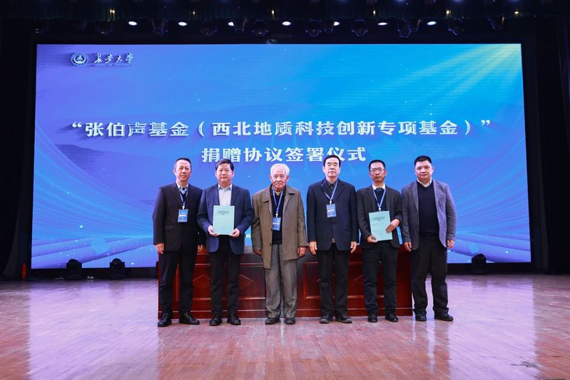 尹立河与长安大学副校长黎开谊共同签署了《张伯声基金(西北地质科技创新专项基金)捐赠协议》。张国伟院士、王双明院士、计文化、长安大学副校长李振洪上台见证。这一协议的签署,标志着各方合作进入了崭新的阶段,为传承科学精神、服务国家战略需求搭建了更为坚实的平台。