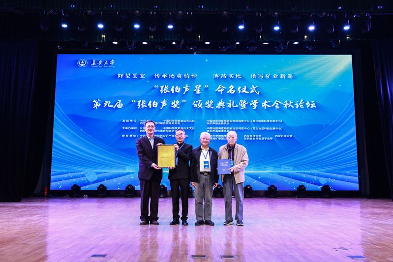 10月25日,“张伯声星”命名仪式暨第九届“张伯声奖”颁奖典礼在我校长安文化艺术中心大礼堂举行。本次活动由长安大学、中国科学院紫金山天文台、中国地质调查局西安调查中心、西安地壳波浪状镶嵌构造研究会、张伯声基金委员会等单位主承办,旨在永恒铭记张伯声先生为我国地质科学与教育事业建立的丰功伟绩,传承与弘扬科学精神,激励新一代地质工作者勇担使命、开拓创新。